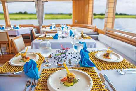 Meals are artfully prepared, and all food served aboard, except for olive oil and balsamic vinegar, is sourced locally. The dining room accommodates all guests at once for a single seating. Enjoy free beer, wine, and Pisco Sours with meals on all 2023 departures and starting in 2024, we will cover your full bar tab, including liquor and cocktails.