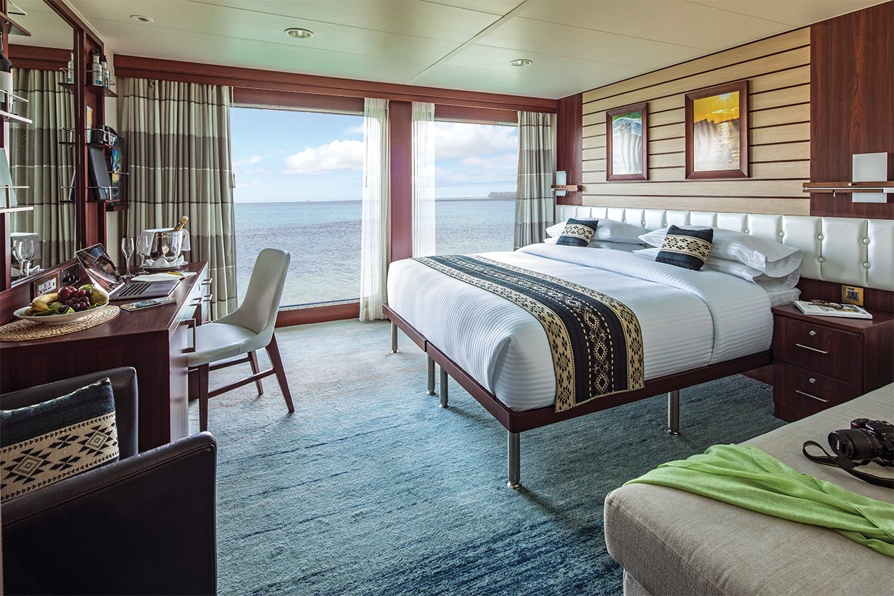 All feature ocean views, private facilities, climate controls, and hair dryers, plus Ethernet, Wi-Fi connections and USB ports for mobile devices. Choose from suites on two decks, plus connecting cabins and triples are available for families and friends.