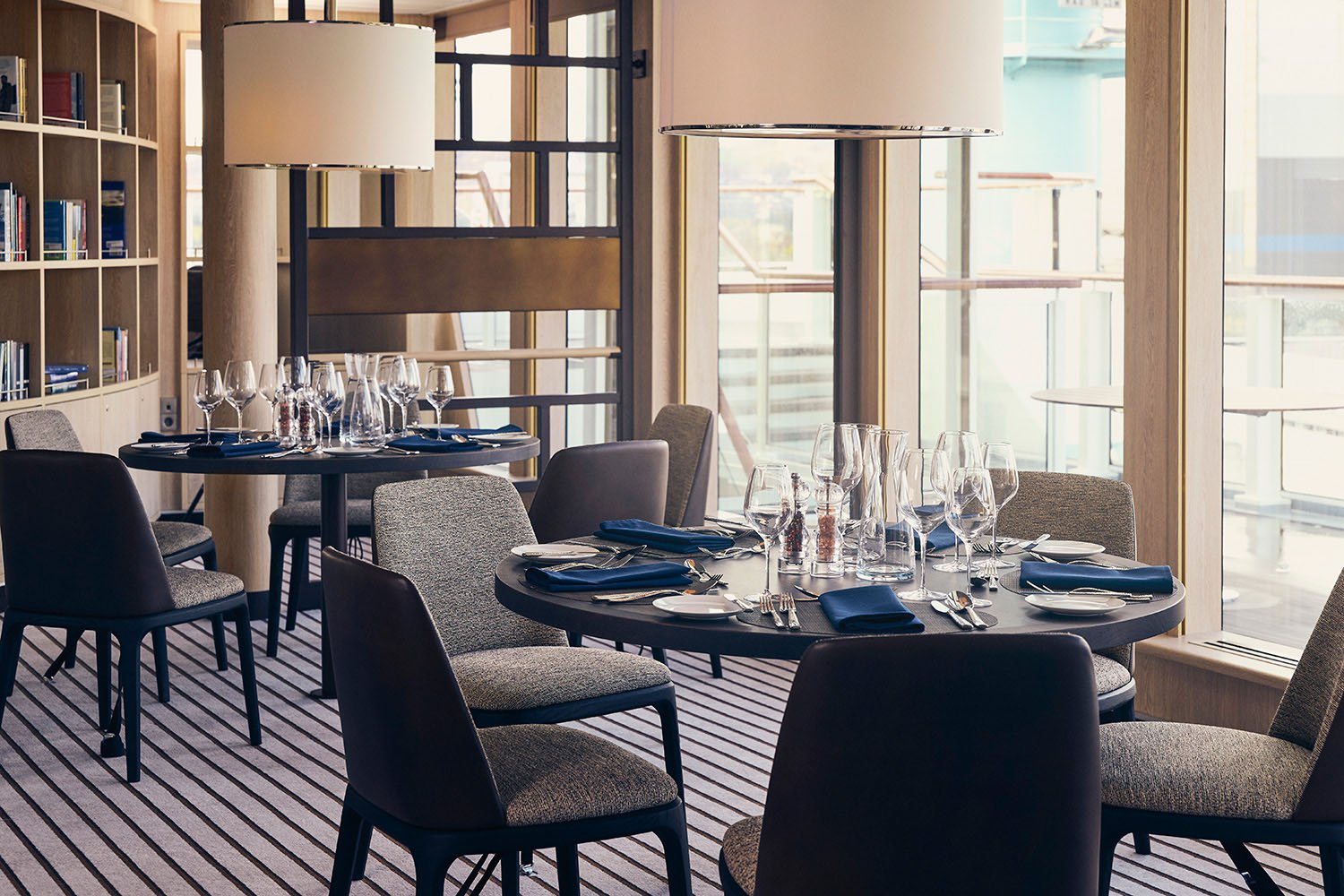 The main dining room aboard, 270º’s name captures its key feature: panoramic windows for views from every table. The daily menu also reflects a sense of the place outside the windows: imagine eating an ethereal Pavlova as a berg floats lightly by? A selection of plant-forward options, including artisanal vegan cheeses, and a casual, no-assigned-seating vibe makes 270º uniquely welcoming for all.
