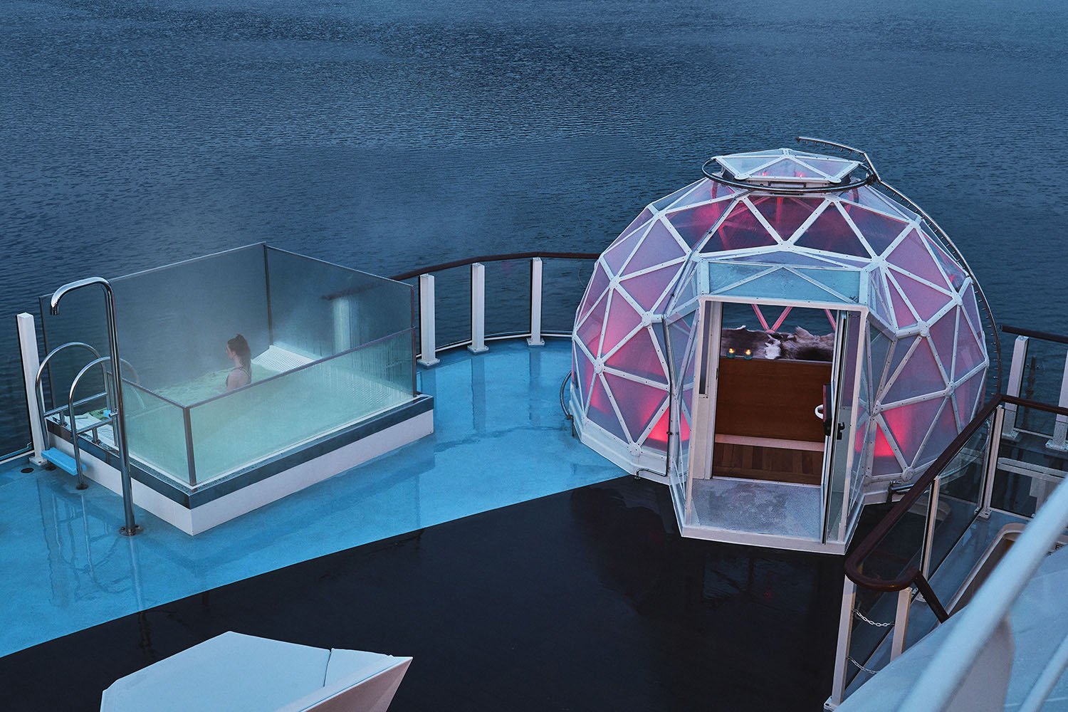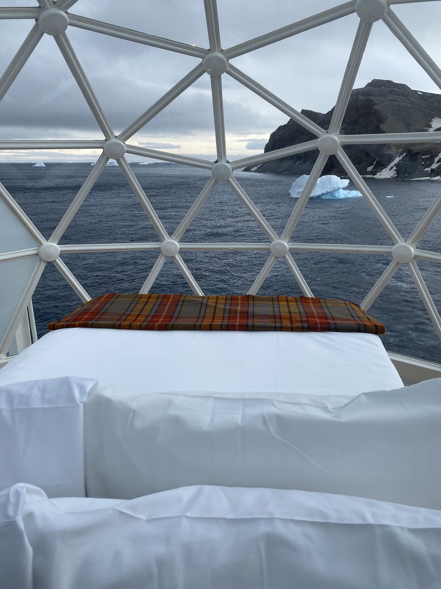 The Points Guy correspondent Gene Sloan spent a cozy night in one of the geodesic glass igloos perched atop the observation deck on National Geographic Resolution—an experience available to all guests aboard National Geographic Resolution and National Geographic Endurance on a first-come, first-serve basis.