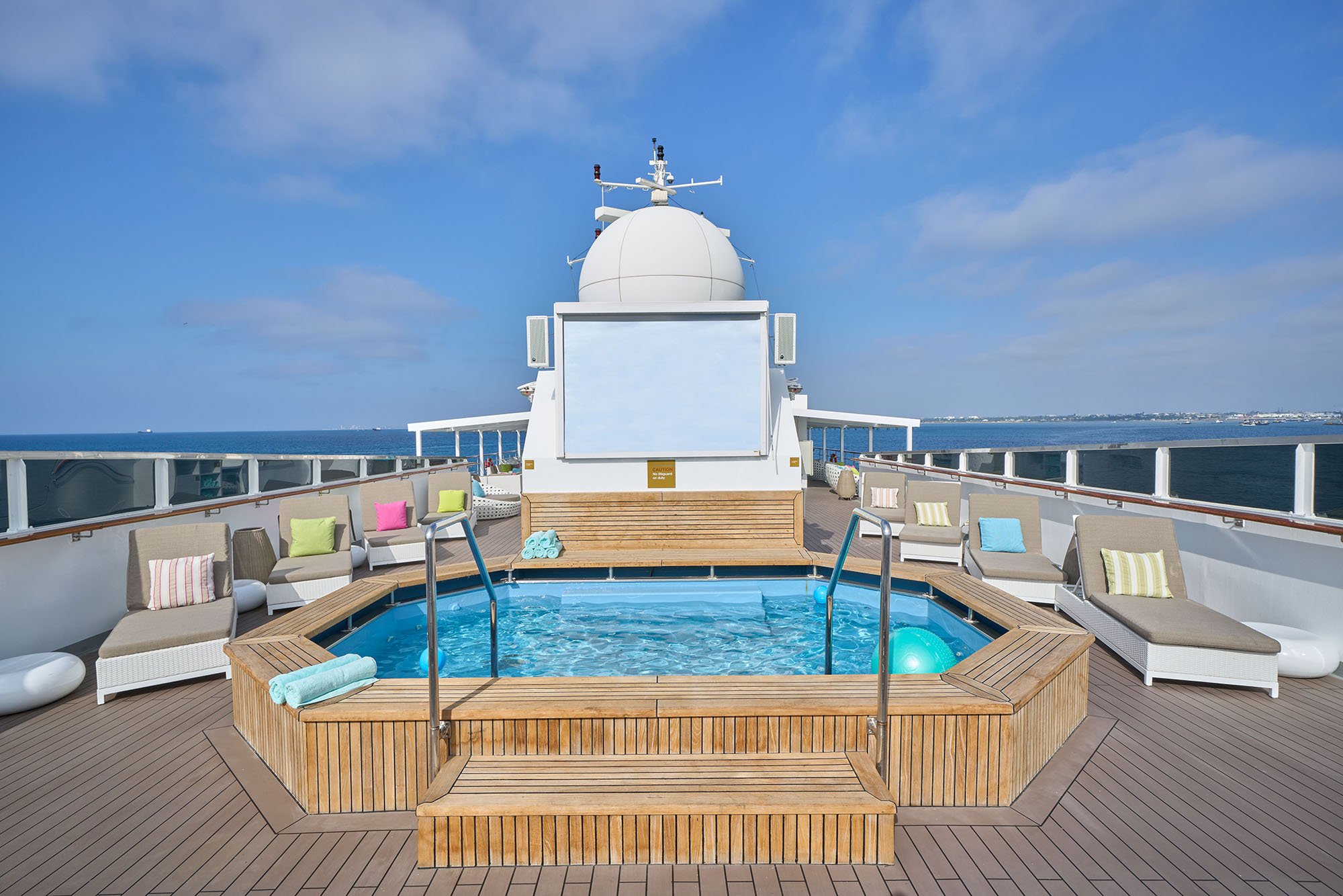 Special features include teak decks, indoor-outdoor dining options, an impressive observation deck, and new amenities like a climate-controlled Marina and a dedicated Science Hub.