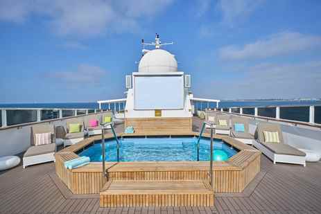Enjoy meals in the expanded al fresco Patio Café, sophisticated Yacht Club Restaurant on the Promenade Deck, or Grill on the Observation Deck, where there’s also a bar and ample seating to host events. Here, guests gather for wine tastings, chocolate tastings, and Bubble-Qs—BBQs made extra celebratory with Champagne. The convenient 24-hour beverage and snack stations in the Bar and Library are other welcome amenities.