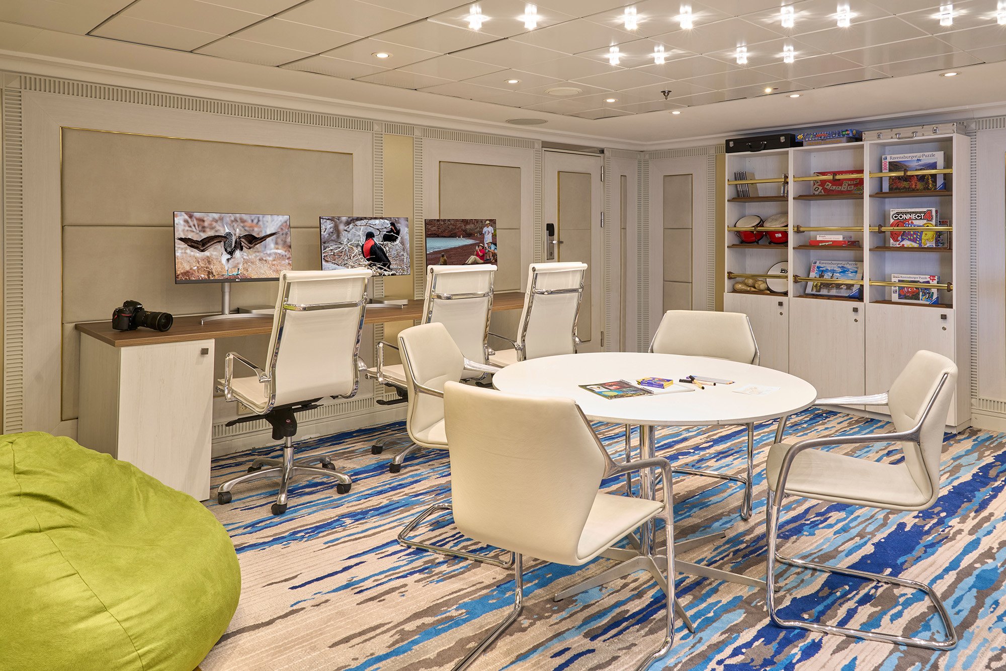 Outfitted with scientific equipment, the exciting new Science Hub continues the Lindblad Expeditions-National Geographic legacy of supporting conservation and research. Equipped for underway oceanography, interactive video presentations, and an enhanced photo experience, the Science Hub is also a place for young guests in the National Geographic Global Explorers Program to experience hands-on learning.