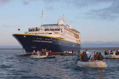 National Geographic Islander II carries a fleet of kayaks and stand-up paddleboards, a glass-bottom boat, an expanded flotilla of versatile Zodiacs, complete snorkel gear for adults and children, video microscope, and Science Hub.