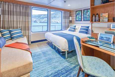 Larger than her siblings National Geographic Sea Bird and National Geographic Sea Lion, National Geographic Quest has the same shallow draft, allowing her captain to navigate the same inner reaches and provide the same intimate, "insider" experiences in these charismatic regions. Modern cleaned-lined, with large expanses of glass to keep you connected to the extraordinary views, National Geographic Quest enables you to see, do, and experience the best of her geographies.