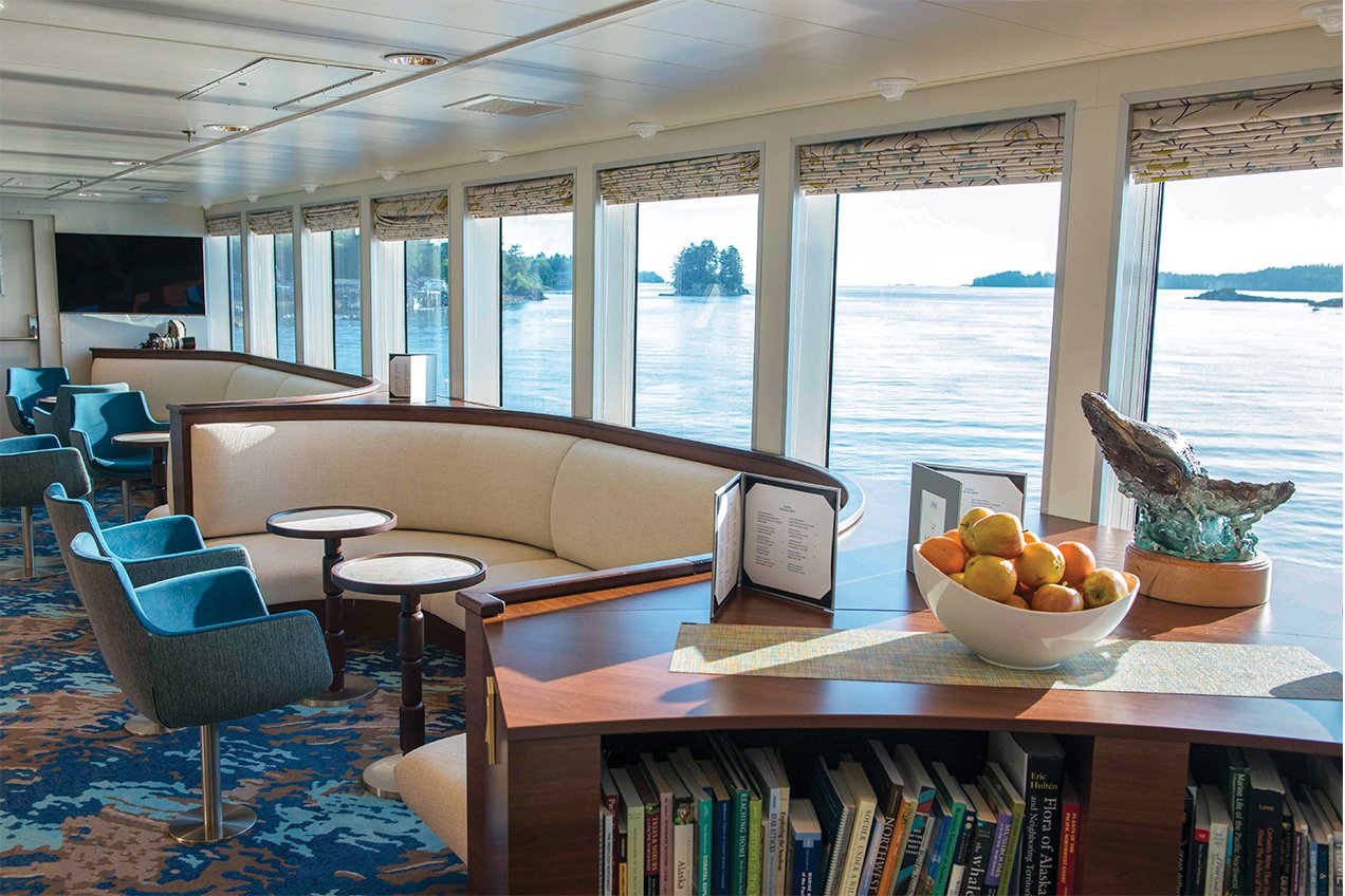 Reception; main dining area; global gallery; fitness center; lounge with full-service bar and state-of-the-art presentation facilities; observation deck; mudroom with lockers for expedition gear; partially covered furnished sundeck; plus open access to the Bridge, the captain, the officers, and on-duty wildlife spotters.