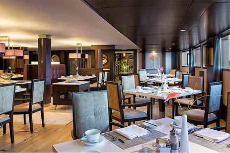 Every cabin and suite is elegant and spacious. All face outside, with large windows that are nearly floor to ceiling and which open to offer views of river life. Each cabin has a TV, DVD player, mini-fridge, safe, hair dryer, individual climate controls, and remote-control-operated blackout blinds. Laundry service is included, and you’ll find ample storage.