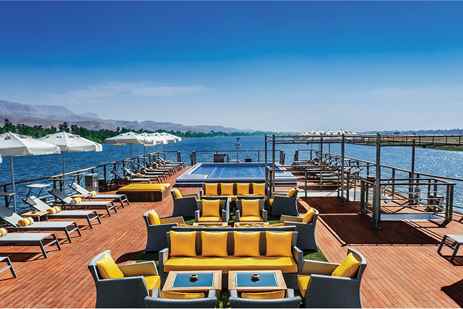 Relax on a deck chair next to the 36-foot pool or take a meal in the alfresco dining room to watch life along the riverbanks from the top deck. Spend a few hours in the library reading about Egyptian history or join your photo instructor for a session in the lounge.