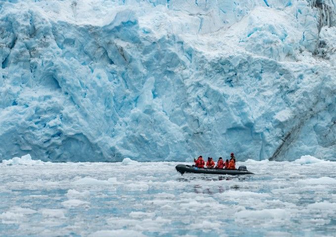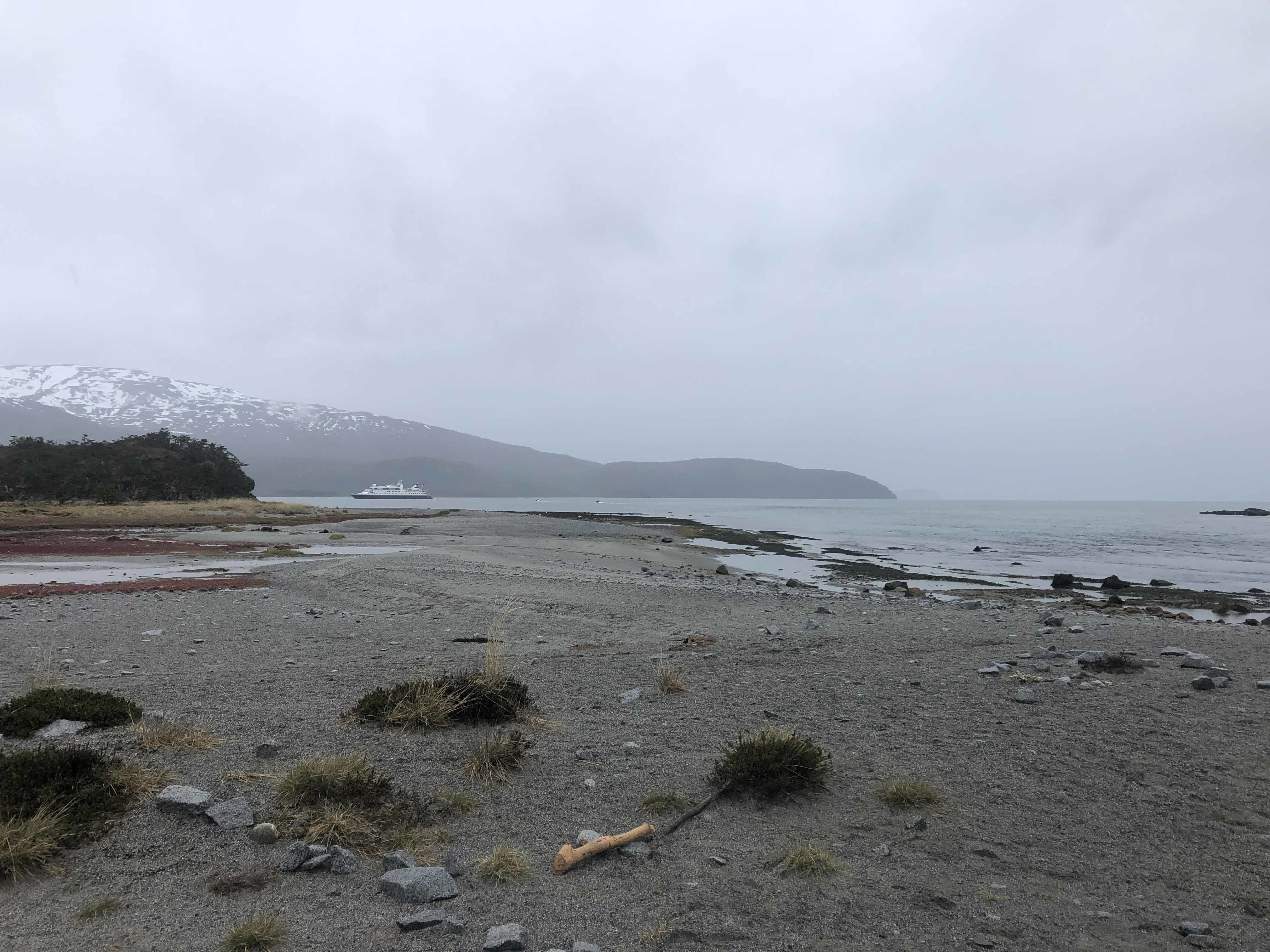 This morning we found ourselves in Ainsworth Bay, with the Marinelli Glacier peeking at us from around the corner. Marinelli is the fastest receding glacier in all of South America, and as we took Zodiacs to shore, we could see the terminal moraine which was an indication of where the glacier stood one hundred years earlier. Photographic evidence shows that it has receded 100 km since 1913.