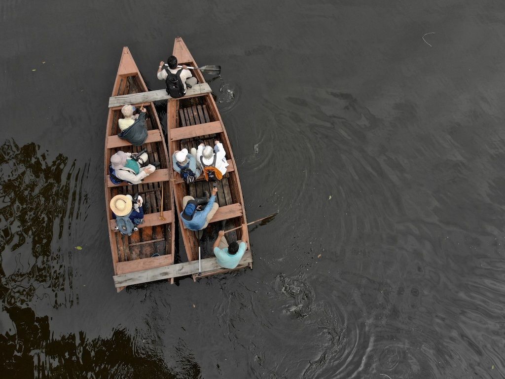 We departed in the early hours for our exploration of Yanayacu River, a tributary of the Marañón River. As soon as we boarded the skiffs, we spotted pink river dolphins foraging in the shallow waters with neotropic cormorants. At this time of year, the landscape is dotted with different species of birds, including large flocks of great egrets. We entered the kingdom of the endless forest, through which most of the rivers flow to form larger ones. The Ucayali and the Marañón Rivers eventually merge, giving origin to the mighty Amazon. This jungle is vibrant and full of life, from birds to monkeys. This morning was a special one, as hundreds of egrets mixed with cormorants, wood storks, and kingfishers. All of them foraged in the early hours. In the afternoon, we visited Amazon Park to explore the forest and suspension bridges. This forest is a pristine one, as no tree has ever been cut. The ecosystem is just like it was thousands of years ago. This is the kingdom of the giants! All the trees in this forest are around a hundred feet tall. We were happy to visit such a pristine spot in the Amazon. Indeed, we felt small as we walked under the canopy. There is so much foliage that there is not much light near the ground of the forest. The rainforest is just amazing!
