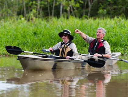 For our afternoon, we headed down into the Marañon River to a location known as Piraña Caño. We had the option to explore the creek either by kayak or by skiff, and they were both fantastic choices!