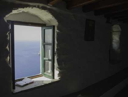 Amorgos is one of my favorite islands. It’s definitely off the beaten track, but you might have heard about it because of the great movie of the French director Luc Besson with the title “Big Blue,” filmed partially in Amorgos. So every time we have a chance to come here I’m really happy to share my “little fascination” with our guests. The main focus of the visit is the Monastery of Hozoviotissa. Every photo taken of the monastery in every guide book makes you want to get there, although it’s a hike of over 300 steps. The views on the way are incredibly beautiful so you can take it really slow and admire the “big blue” down below every step you take. The monastery seems to be not so far off, so you just keep hiking with more and more curiosity about the life of the monks inside, as the monastery is literally “patched” on the cliff wall so far from civilization. When you get closer you can’t believe that the building on the cliff has seven floors! The entrance is so tiny that we have to bend our bodies to get under the ceiling. Once inside, even more surprising is that there is a little chapel with the icon of the Virgin Mary found about 1,000 years ago in the waters under the cliffs. The monks have to be really patient with all visitors disturbing them in the silence of their prayers, but they are very nice hosts and serve us samples of rakomelo—a kind of honey liquor that they make themselves. Fortified after the rakomelo samplings, we hike back down back to the bus.