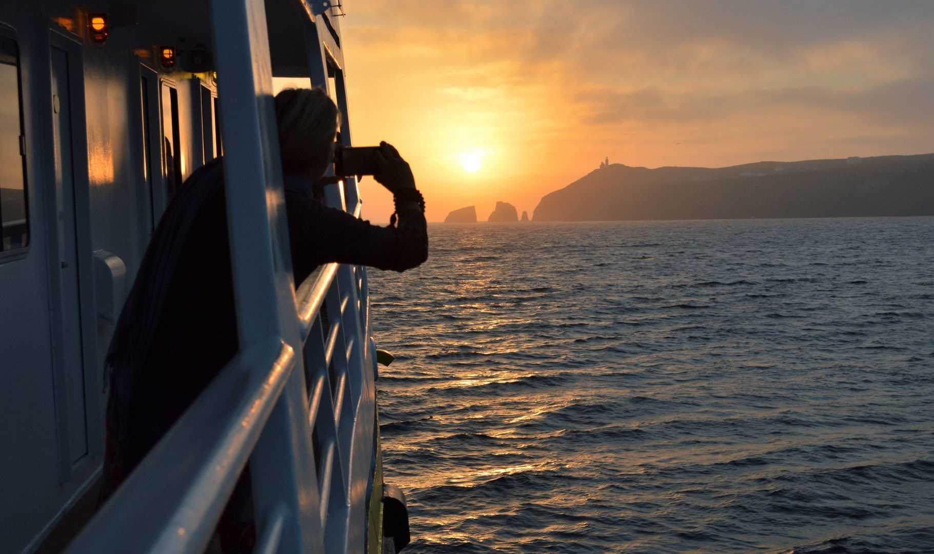 We woke up to a stunning sunrise while anchored off Santa Rosa Island. While some of us started the day with morning stretches on the sundeck, the rest of our guests (and staff) watched grey whales pass by the bow of National Geographic Quest . It was such a fantastic way to start the day. Our guests divided into groups to spend the afternoon exploring Santa Rosa. They admired everything the area has to offer, especially the renowned, endemic Torrey pine forests. These forests are among the rarest in the world, as they only occur in two places on Earth. Not only were they stunning, but they also proved a fantastic spot to have our picnic lunches. Occasionally, we caught glimpses of one of the tiny, elusive island foxes; they are also an endemic species! The weather was so lovely that some of us even went for a swim. We celebrated our day over cocktails on the ship while listening to our National Geographic explorer, Brian Kastle, share some stories about his research. Our ship simultaneously circumnavigated Santa Rosa, and then we finished our day watching the sunset over San Miguel Island.