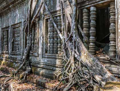 Our last full day here in Siem Reap began early. Some of us chose visit the Beng Mealea temple complex. After a scenic 1 ½ hour road trip through the Cambodian countryside, we came to a secluded and largely unrestored early 12th century temple. It was mystical and magical with its stones lying in heaps and with trees and thick brush covering much of it. It was a pleasant surprise and felt very authentic. The crowds were much smaller at this intimate temple and it was easy to take photos without people in them. The temple may have served as an early blueprint of Angkor Wat. It was also dedicated to the god, Vishnu, but had some Buddhist motifs as well. Everyone who took this trip felt the 3 hour return drive was well worth the effort. We returned to Siem Reap to eat a lovely meal with the traditional Khmer dish called Amok at a restaurant near the hotel.