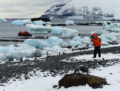 In the afternoon naturalist Eric Guth was scheduled to give a lecture on snow and ice titled “The history of a snow crystal.” However, just as his talk was to start, we heard expedition leader Lisa Kelley sounding on the PA-system: “Killer whales ahead!” This was close to Rosamel Island in Erebus & Terror Gulf, at the entrance to the Weddell Sea. The observation decks were soon filled with eager guests. These killer whales had been spotted by Bob Pitman and Lisa Ballance, two killer whale scientists who are aboard conducting observations and also putting satellite tags on killer whales for scientific purposes. They also share their extensive knowledge on killer whales with the guests. Today the team of scientists and National Geographic Explorer staff were fortunate to successfully deploy tags on two different whales, for the first time this year!