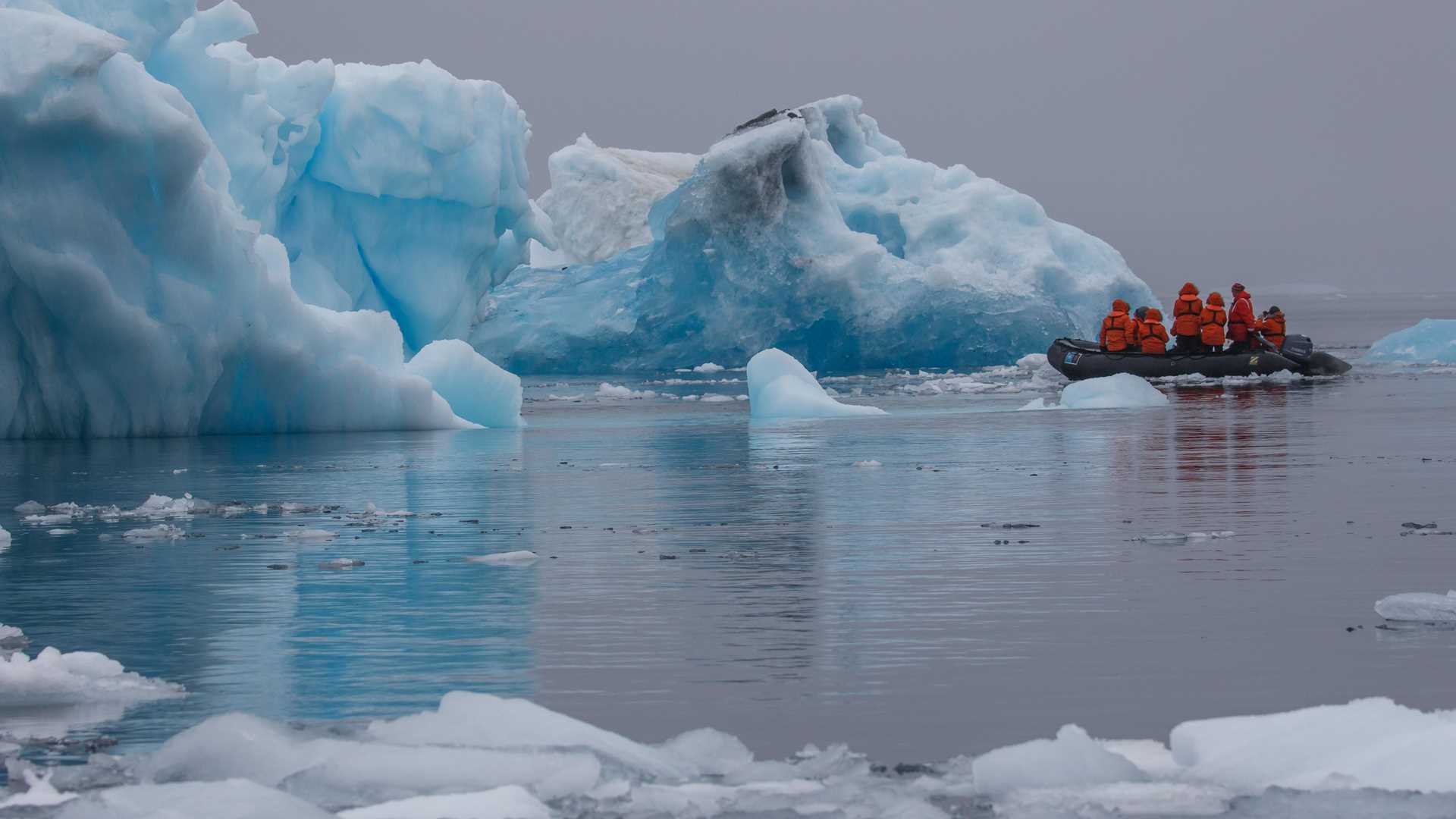 cruise around a multitude of icebergs throughout the area. On scattered bergs
