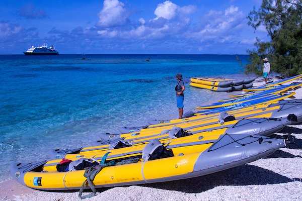 Early in the morning National Geographic Orion ventured into the narrow passage of the lagoon and set anchor. After breakfast most of the Exclusive Resort members set off to the atoll for a morning packed with snorkeling, swimming, stand-up paddleboarding and kayaking. Such a rough life out here on this gorgeous sunny morning in tropical paradise!