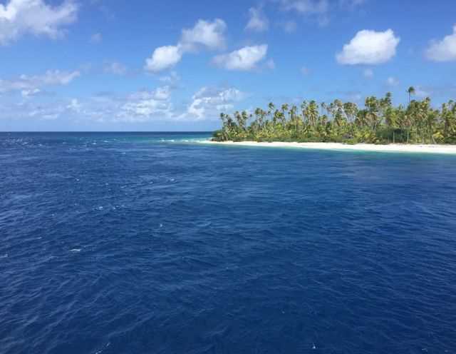 Over the lunch hour, our captain and bridge team brought the ship through a narrow pass on the Apataki atoll, the first to be visited. These islands are so low—not much higher than the coconut palms that grow on them—that we don’t see them until we are nearly there.