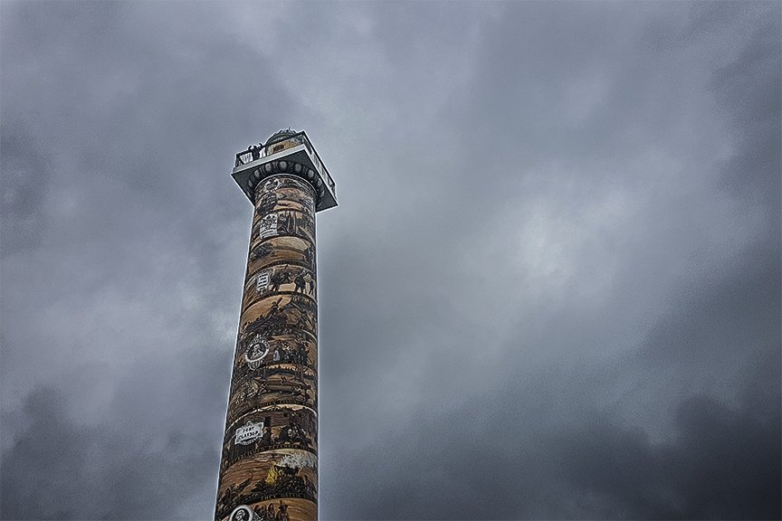 Our first exploration of the day was at Fort Clatsop, the site where the Lewis and Clark Expedition hunkered down for several months. We enjoyed the museum there and a lovely nature walk through the temperate rainforest. Next, we visited the beautiful Astoria Column, which stands 125 feet high over the town. We spent time at the Columbia River Maritime Museum, learning about the deadly Columbia River Bar.