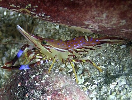 The dolphins in the Falklands can be quite amusing, always up for a game.  The divers, Magnus and Jesper, baker and head chef, were surprised on their first dive when they found that there were dolphins waiting for them, just to play and pass the time.  Not a bad way to go about, in my opinion, I’d do it every day!  Yet, as exciting as the big animals are, there is more. There is a myriad of interesting species and colors here that can be seen, not the least of which is the curious painted shrimp.  No, it will not get you wet, but it could make you smile.