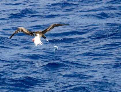 These presentations are punctuated by forays out on deck to observe the wildlife putting on a spectacular display despite being far out of sight of land in the middle of the Coral Sea. Red Footed Boobies soar over an unbroken horizon, streamlined bodies effortlessly gliding in the lee of the ship. This gracefulness is punctuated by frenzied bursts of activity as the ship’s passage disturbs schools of flying fish, sending them skipping over the wave-tops, pectoral fins extended as they catch gusts of wind and glide away from the perceived threat we represent. Unfortunately the plot thickens as this brief absence from their marine environment leaves them exposed and vulnerable to be plucked out of midair by the aerial predators patiently waiting high above. Some are luckier than others and despite being nabbed and taken to new heights, manage to wriggle free from sharp beaks and into the safety of the depths below. Marveling at such visual treats is even more exciting knowing that there are more surprises in store on the yet to be written pages of our expedition that lies ahead.