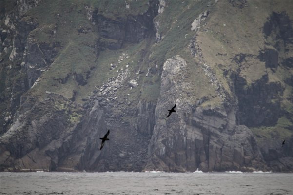 As land emerged from behind a veil of clouds, we were treated to views of the fabled and infamous Cape Horn. This major promontory juts out towards the Southern Ocean dividing the Pacific and Atlantic oceans. Large phalanxes of sooty shearwaters exploded into view all morning, zipping past our bow. This bird is an incredibly accomplished flier, covering tens of thousands of kilometres on an annual migration that takes it from here to the northern seas: either to Alaska or Britain. Among the thousands of shearwaters, black-browed albatrosses and white-chinned petrels made short work of the stiff wind. It is mesmerising to watch them wheeling against the sky - banking steeply into the wind to gain lift before dropping down to within a whisker of the sea’s choppy surface. This way of travelling is known to ornithologists as “dynamic soaring”.