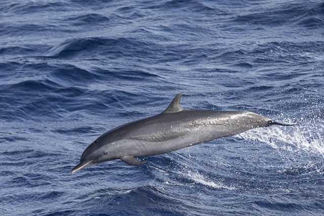 I love to spend time out on deck while at sea; some people may find it boring, but not the attentive observer. There is always something going on and today several of us had the chance to watch several marine creatures including sea turtles, flying fish and sea birds. The occasional brown booby flew around Harmony V and an immature one even landed on her for a short rest! Every now and then the ship's movement scared flying fish and made them take off and glide over the waves for surprisingly long distances while some among us rubbed their eyes in disbelief of what they were looking at! But everyone's favorites were some stenella dolphins that followed us for quite a long time; several went riding the pressure wave that the ship's motion creates in front of the bow, while some others jumped over the surface as they raced each other towards us.