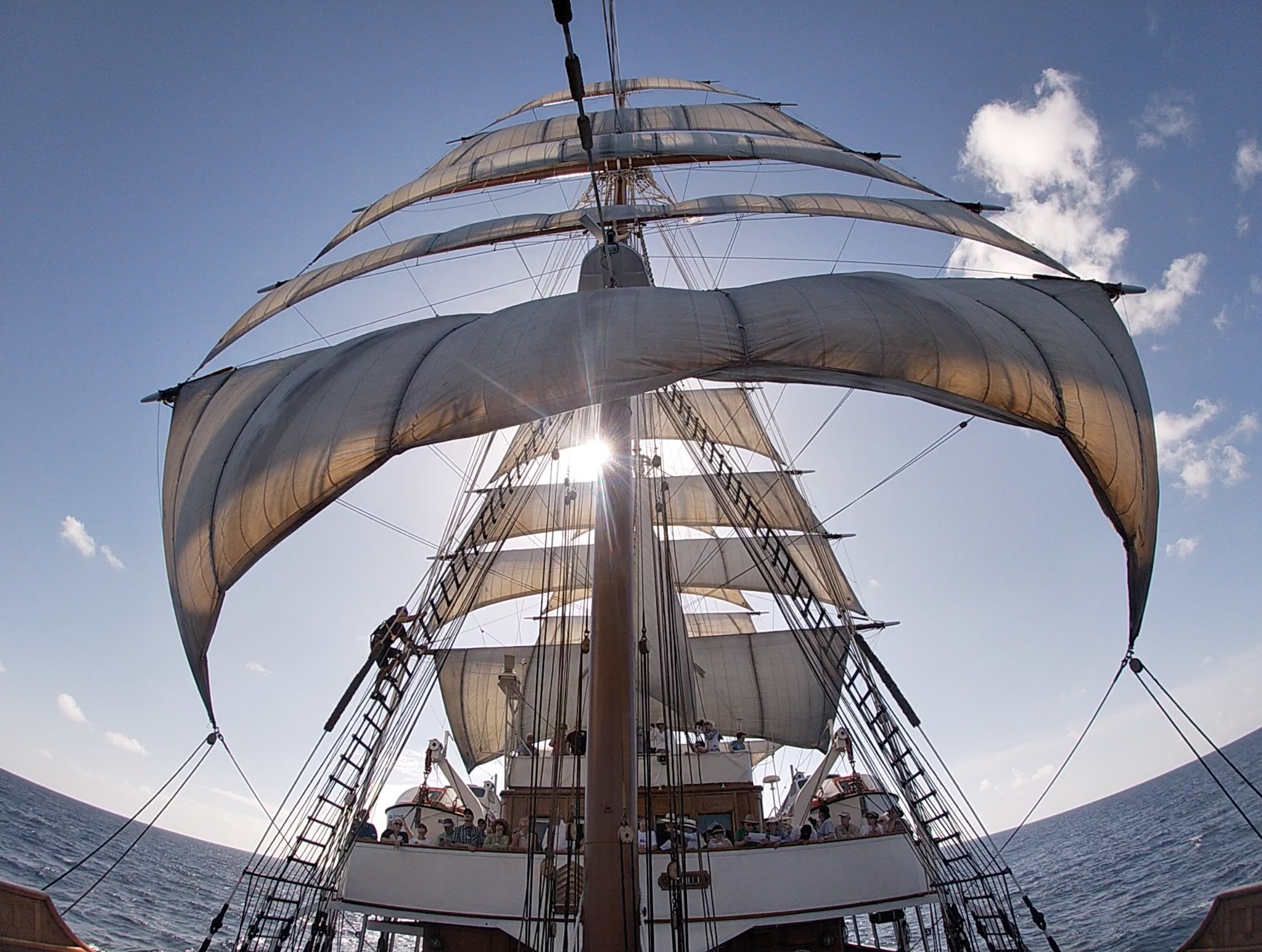 We usually try to plan our first day on Sea Cloud as a full day at sea, so guests can get their first introduction to the glory of a hand-sailed, square-rigged sailing ship and witness all the line-handling and rigging involved. Captain Komakin set the sails in a moderate easterly trade wind breeze about 30 miles east of St. Lucia, with the aim of sailing west to finish the day in sunset light under the iconic Pitons of St. Lucia. That’s exactly what we did, and by the end of the day, Sea Cloud had another 50 dedicated sailors in the family!
