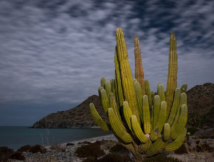 From the tip of Isla Carmen we headed south to our afternoon landing spot, “Tursiops,” named by a previous Lindblad-National Geographic expedition team for a bottlenose dolphin skull once found on that beach. First up were water activities. Swimmers, snorkelers, and kayakers stayed cool in and on the water during the heat of the early afternoon. Later we went out for walks in the arroyo to see and photograph the impressive huge cardon cactus and giant barrel cactus found here. We found both with beautiful blooms, which is always a treat.