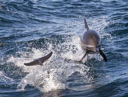 We started a new day with a wonderful sunrise at sea, and the clean atmosphere provided the perfect setup for a nice green flash; several sceptics were converted and the believers reaffirmed their convictions. National Geographic Sea Bird sailed north alongside San Ildefonso Island when a group of long-beaked common dolphins was discovered by observers on the ship’s bow. We approached the dolphins and watched them as they swam and jumped next to us, many of them showing large remoras hanging on their sides or bellies. Remoras –also known as shark-suckers—are fishes with a modified dorsal fin that acts like a suction cup, allowing its owner to attach itself to larger marine creatures like sharks, sea turtles, whales, or dolphins. They don’t cause any harm and get a free ride while waiting to feed on scraps of their host’s meals.