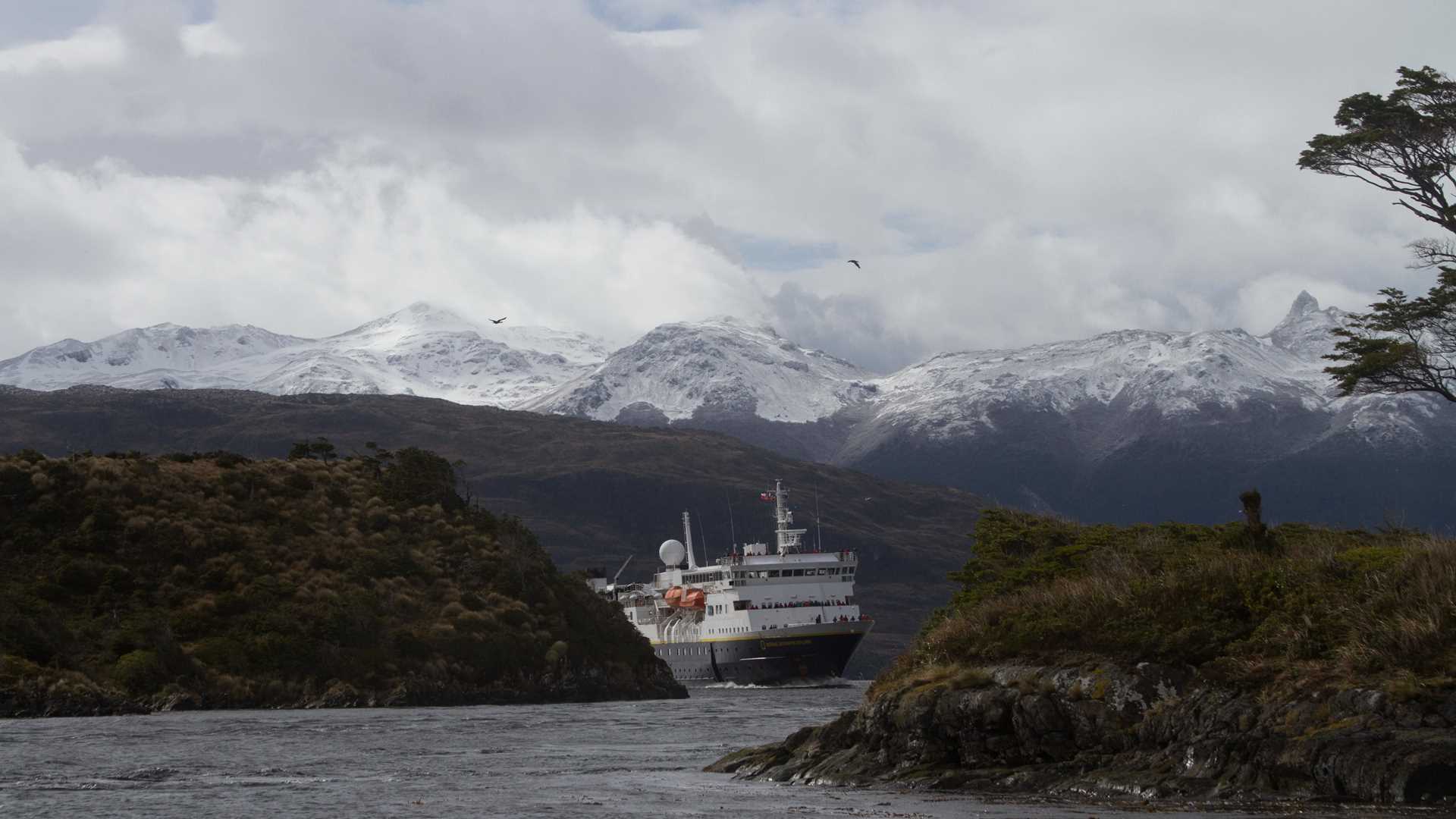 While crossing the narrows we saw southern giant petrels, South American tern, and kelp gulls flying around our ship.