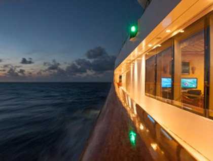 Bathed in tropical warmth, early risers watch the sky evolve through pinks and oranges, eventually reaching the golden glow of sunrise as the solar disc breaks through the eastern horizon. The ship slowly comes to life as morning stretchers join wellness specialist Ewa Bartkowiak on the Sun Deck. Breakfast and coffee are enjoyed in the relaxed atmosphere of the Outdoor Café as we are cooled by a gentle breeze.