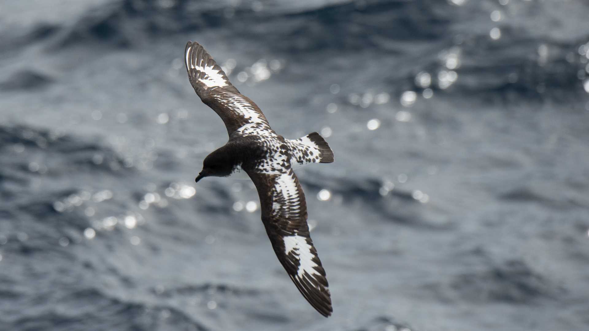 Today’s strong wind has another wonderful outcome: the birdlife. Petrels, albatrosses, and shearwaters of the Southern Ocean live for the wind; in calm conditions, they are relegated to sit on the ocean surface, but when the wind freshens, they harness it like no other creatures, soaring for hours and covering vast expanses of ocean without ever beating a wing. They say when a wandering albatross fledges from its nest, it won’t return to land for five years. They say these birds even sleep on the wing. So between entertaining presentations by our natural history staff Krista (“On Assignment with National Geographic”), Stephen (“Hydrography: The World We Don’t Know”) and Eduardo (“The Race for the South Pole”), we watched from the bridge for some of the largest flying birds that have ever lived.