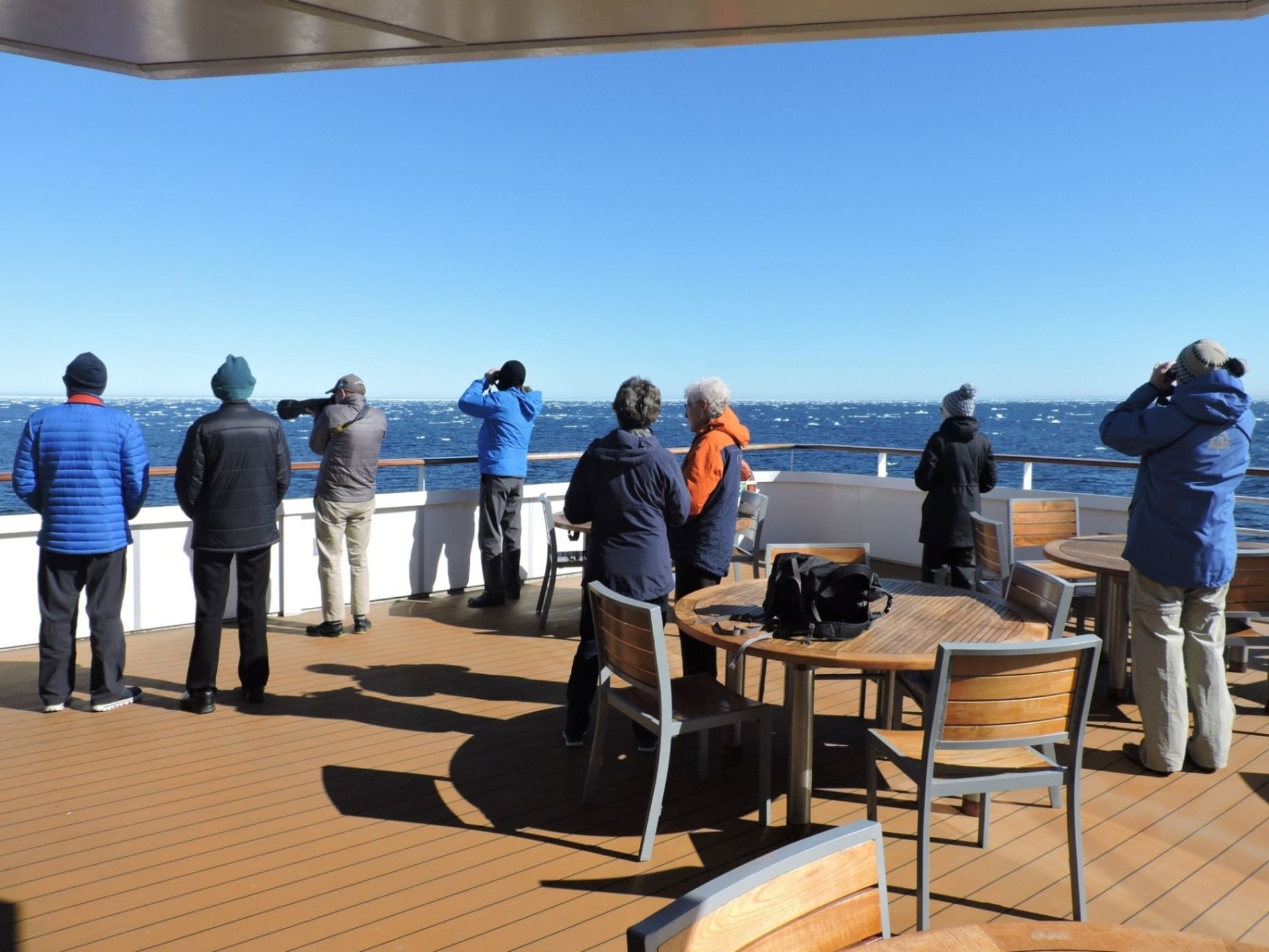 On the face of it, a day spent shrouded in fog could have been quite boring, but in this part of the world, even boring is special. Outside, the freezing air clung to faces, and the crisp clean air came in reinvigorating and replenishing deep breaths. The silence of fog is a wonder in itself, and the virtually silent engines of Explorer didn’t intrude on the magical experience. With an evident light swell, the dense, brash ice was in constant movement, swishing and whispering secrets that the contemplative among us strived to understand.
