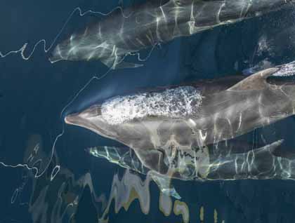 Interspersed with the whale and sea turtle sightings were pods of bottlenose and common dolphins feeding, bow riding, and leaping out of the sea! The clear turquoise water made viewing and photographing them especially interesting, and our deck lunch surrounded by acrobatic common dolphins was one we will long remember.