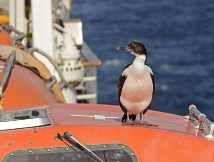 There was also a stowaway for much of the day: a juvenile imperial shag. It frequently would fly around the ship before alighting on one of the lifeboats as a resting platform. The audacity of the bird was to be admired.