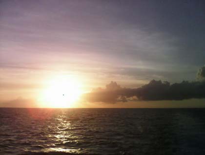 Sunrise was subdued this morning, with the sun hiding behind the clouds for quite a while. The naturalists alerted us to a group of spotted dolphins riding our bow wave, always a spectacular sight.