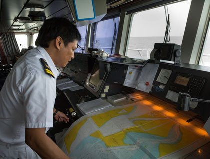 Today we continued our journey southward along the coast of Borneo. The shallow Java Sea churned milky green amid wind-whipped choppy waves. After a leisurely breakfast we enjoyed seeing more of National Geographic Photographer Brian Skerry’s stunning photos during his “Ocean Wild” presentation, and his stories of shooting articles for the magazine. In anticipation of our upcoming adventures, Dr. Birute Galdikas gave an interesting presentation about Camp Leakey’s orangutans, and the Orangutan Foundation International’s Care Center, both of which we will be visiting in the days ahead.