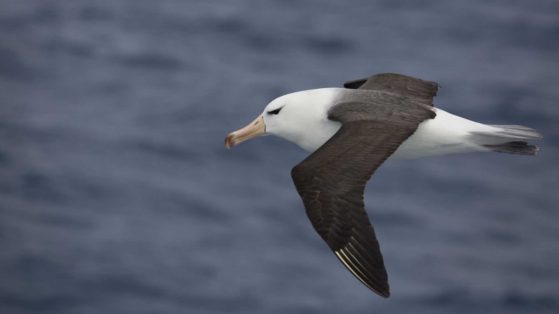 Today the seas were calm and the water blue as the National Geographic Explorer steamed towards the sub-Antarctic island of South Georgia. Yesterday the ship left the British territory of the Falkland Islands, where the guests spent the day hiking and Zodiac cruising around these spectacular locations. South Georgia and the Falkland Islands are similar geographically, but differ hugely biologically. South Georgia is south of the Antarctic convergence, meaning the current system pushes cold water down to surround the island. The seawater temperature around the Falkland Islands sits in the low 40s on the Fahrenheit scale, about 6 degrees on the Celsius scale. South Georgia, by contrast, sits with a seawater temperature of 32 degrees Fahrenheit, zero degrees Celsius. This changes the entire ecosystem, from the kelp communities to the fish that can thrive in the ocean, all the way up to the seabirds and whales that survive in these conditions.
