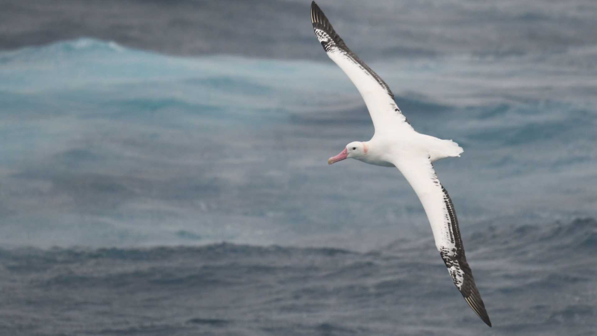 A full day at sea allows for a variety of educational activities. The first presentation of the day was given by our Global Perspectives guest speaker Dr. Andy Clarke, who introduced us to the geography, history, and natural habitats of South Georgia. He also showed examples of previous and present conservation issues. Later in the morning, National Geographic photographer Ralph Lee Hopkins shared his long-time experience of expedition photography. His talk, “Telling the Story of Your Expedition,” contained a number of useful tips on how to succeed with your camera. Just as his talk was wrapping up, we got the message that the first wandering albatross was following the ship, and we had a great opportunity to test our skills right away. We were all excited about this first encounter with the most iconic bird of the Southern Ocean! Out on deck, Jamie Coleman, naturalist and bird expert, willingly provided facts and photo tips to the guests. In addition to the wanderer, we also saw some of the other seabirds endemic to these waters: Cape petrel, northern giant petrel, black-browed albatross, and Antarctic prion.