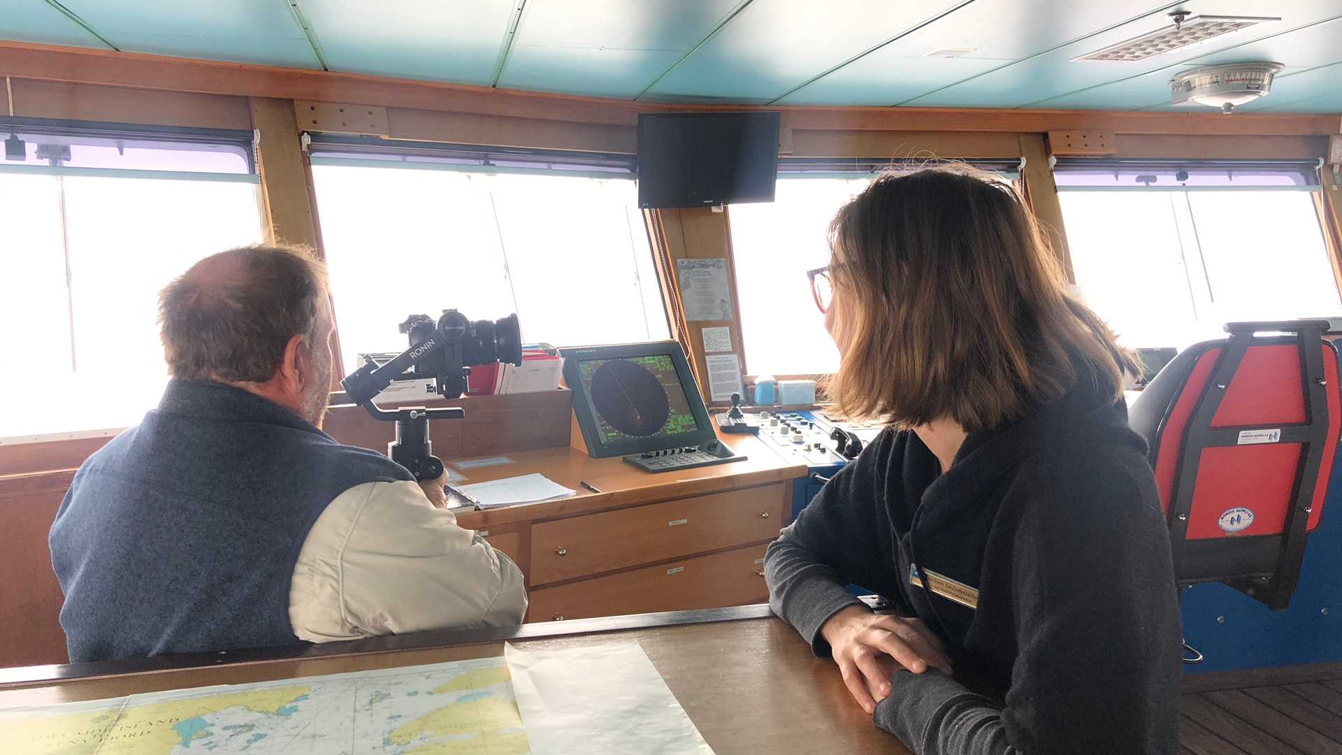 The day began with a thick fog that encompassed the ship and made for some tricky spotting conditions. It was the same kind of fog that has been written about by sailors in times gone by, as air and sea disagree on temperature and wrap everything in an eerie silence. Under this blanket, our photo team experimented with exciting new gizmos and gadgets on the Bridge.