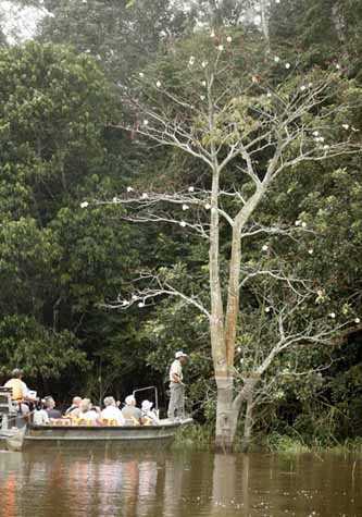 Piranhas indeed exist in the Amazon River and all its tributaries, but they are just as harmless as any other fish to humans. The living proof is that we were all in the water and all returned to our skiffs with all our limbs!