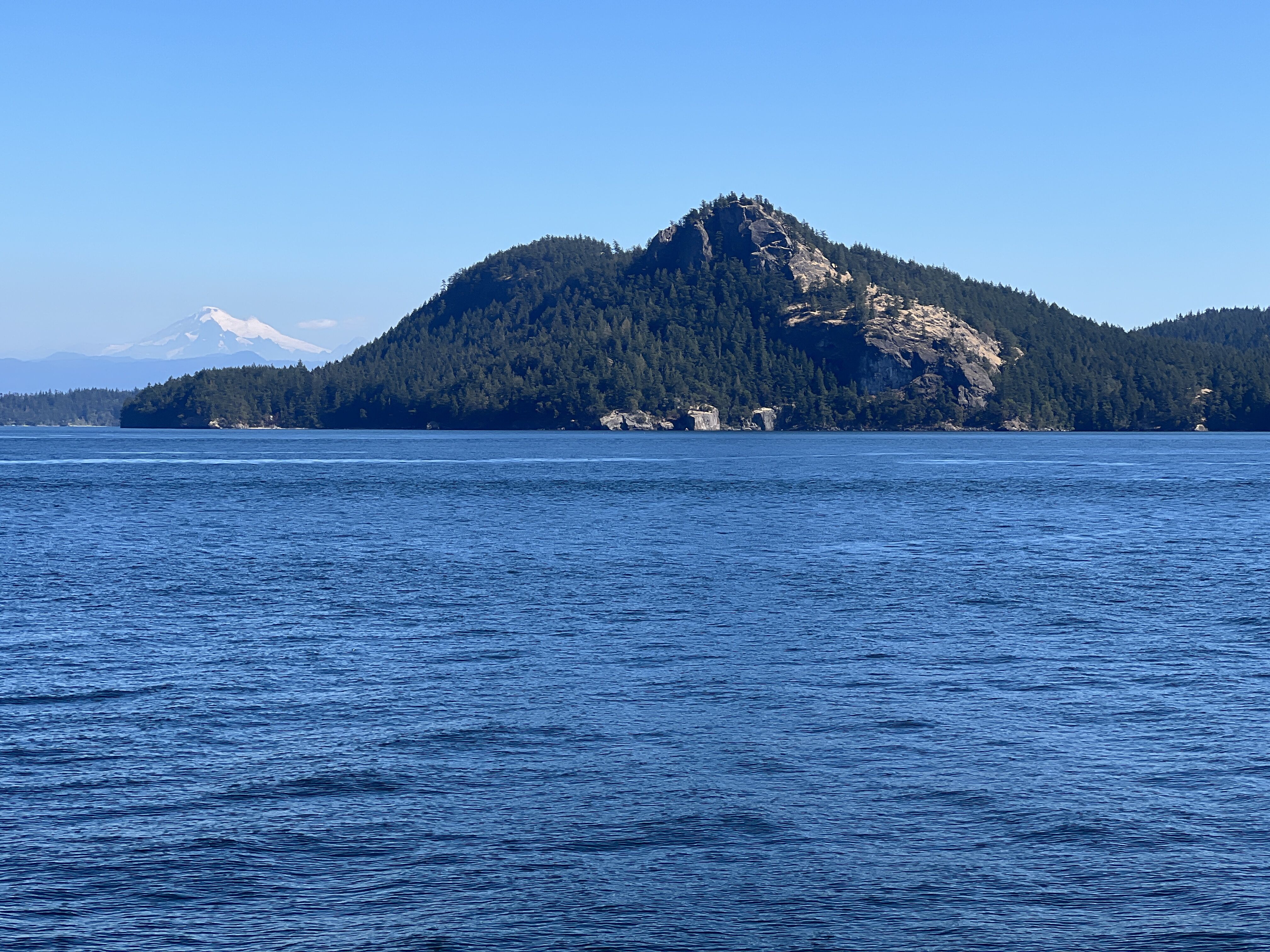 We kept on with our schedule, going around the northern tip of Admiralty Island, where a series of fishing boats were sailing along, and more importantly, whale-watching boats from Juneau with a good number of watchers on each vessel. A pair of whales came up to blow repeatedly, to the great happiness of all the observers!