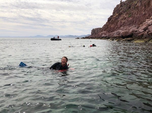 As our expedition leader echoed in a new day with morning announcements, the skies above Baja California erupted into a glorious sea of red and orange. We had an action-packed day awaiting us intrepid travelers beginning with our second opportunity for whale watching. Our pangueros from Puerto Chale met us aboard National Geographic Sea Lion and brought us deeper in Bahia Almejas to see the gray whales in these protected breeding grounds.