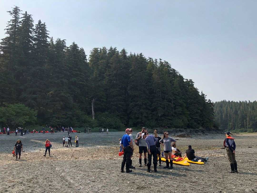 We reached Lake Eva on the next portion of our day’s journey. We started our activities with an array of options tailored to our guests’ interest. Those who opted for a hike were rewarded with a small waterfall, bald eagles, kingfishers and the long-awaited salmon jumping out of the water, as their parents had. Guests who went kayaking along the shoreline had great wildlife spotting opportunities. This day was particularly special because it was the lowest tide of the day, allowing for further exploration of the shoreline and observing all kinds of intertidal life like sea stars, barnacles, clams, and algae.