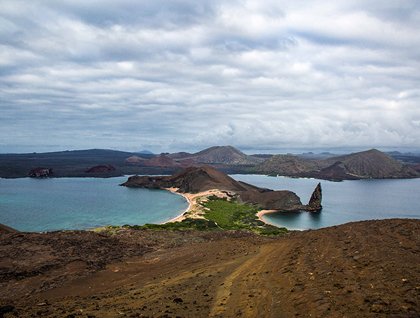 This tiny island features a unique volcanic moonscape of rust-colored "spatter cones" contrasting with large pale tuff cones and sooty lava flows, where the action of erosion over time has created graceful features in the soft volcanic ash. Few plant species can withstand this kind of loose terrain and drought conditions. Only a few animals are seen here, such as lava lizards and snakes.