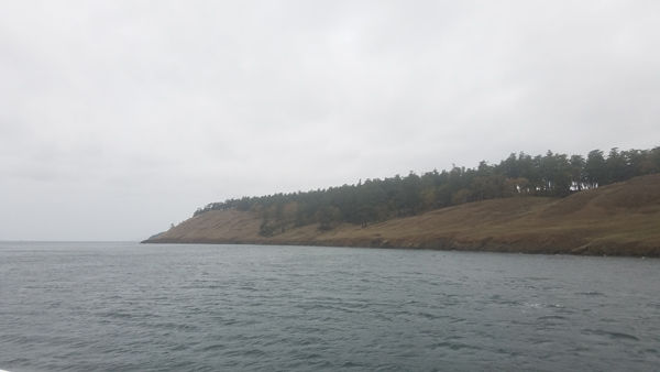After lunch, National Geographic Endeavour ll repositioned to Chinese hat, a small satellite islet off the coast of Santiago Island. At Chinese hat, we went deep water snorkeling with reef sharks, chocolate chip sea stars, sea lions and schools of fish of all sorts. After snorkeling, we went Zodiac riding along the coast of Santiago and spotted a couple of Galapagos Penguins resting on the lava rocks.