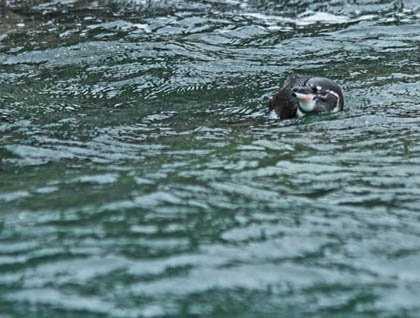Galapagos penguins also nest here in these islands, and we are lucky enough to encounter some in the water. They stay very close to us for some time before swimming away to find fish. Other stand perfectly still on the rocks as we snorkel underneath their feet.