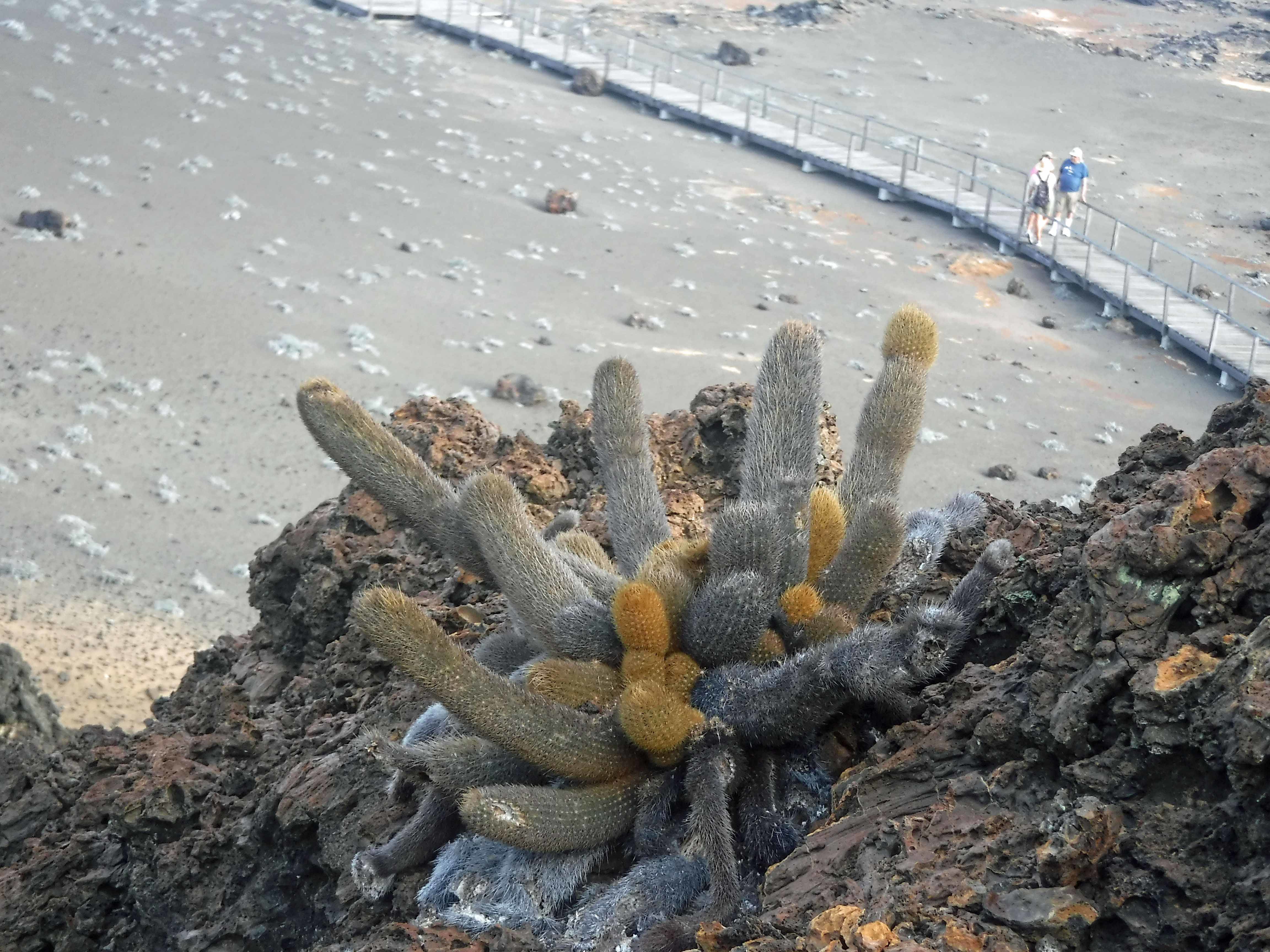 Today we woke up for an early walk uphill to the top of Bartolome, a satellite islet of Santiago Island. This relatively young island is a good place to appreciate different geological formations such as tuff and spatter cones, and young basaltic flows. The presence of pioneer plants such as tiquilia nesiotica and the lava cactus makes of Bartolome a good place to understand how life started in Galapagos after the first colonizers stablished in newly formed islands. In the afternoon, we visited Chinese Hat, another satellite islet of Santiago Island. In this place, we enjoyed a session of snorkeling, and Zodiac rides. The presence of Galapagos penguins, Galapagos hawks, sharks and colorful fishes made up our afternoon.
