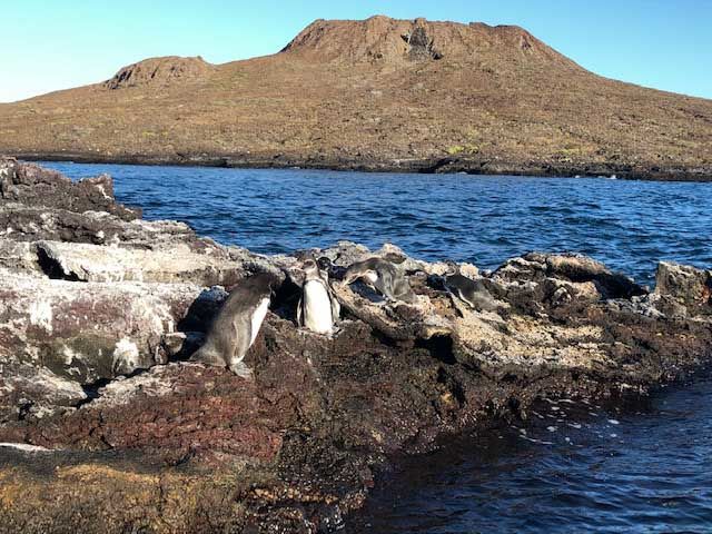 After a well-deserved breakfast, we went to the beach to swim and to enjoy the scenery, but a great surprise was waiting for us on a rock, a lonely Galapagos penguin.